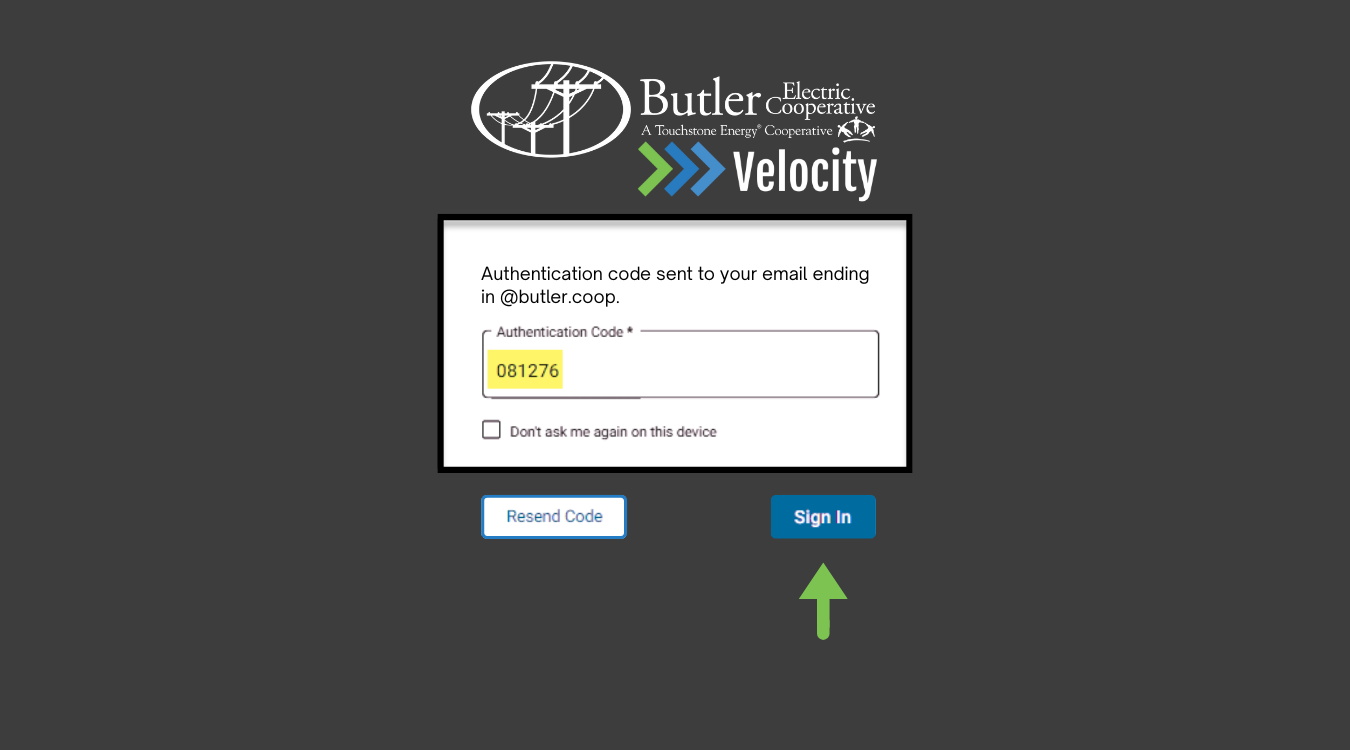 Either way you choose to have your code sent, enter the verification code in the Authentication Code box and click sign in. With two-factor authentication enabled, you will be prompted for a two-factor code when you login, attempt to recover/reset your password, or add additional services to your account.